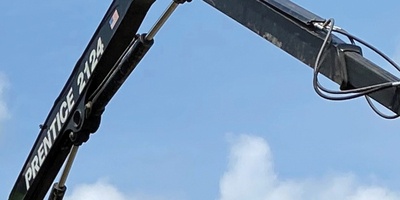 The Prentice 2124 A-frame design is based on a clean, simple pedestal, fabricated from high strength steel. Heat treated, high alloy steel pins and aluminum-bronze pivot bushings maximize durability. Telescopic A-frame stabilizers with individual controls provide a strong footing in uneven terrain.