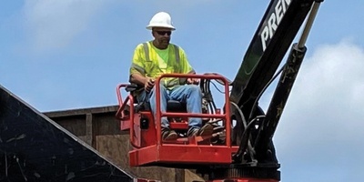 The Prentice 2124 A-frame design is based on a clean, simple pedestal, fabricated from high strength steel. Heat treated, high alloy steel pins and aluminum-bronze pivot bushings maximize durability. Telescopic A-frame stabilizers with individual controls provide a strong footing in uneven terrain.