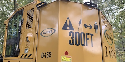 The Weiler B458 is a leveling machine for steeper terrain and excels in select or clear-cut logging. The B458 provide a leading combination of lift capacity, swing torque, and drawbar. Multi-function performance is achieved through dedicated pumps and optimized circuit configurations. The B458 has an extended track roller frame option that includes two additional bottom rollers for a total of eleven, enhancing overall machine stability in steep terrain. In addition, a standard or heavy counterweight option is available for a diversity of harvesting conditions. Unobstructed ground clearance enables unimpeded travel over stumps, rocks, and other debris.